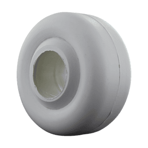4″ X 1 3/8″ White Donut Tread Retort Wheel with 1 1/8″ Plain Bore.