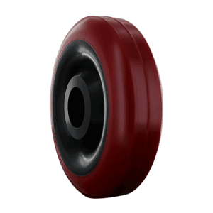 5″ X 1 3/8″ Red on Black, Donut Tread, Polyurethane Wheel with 1 1/8″ Plain Bore.