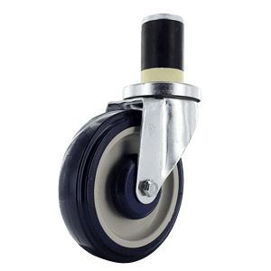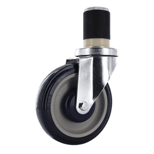 Light/Medium Duty Caster with Zinc Plated Steel with Lacquer Dip Yoke, 0.846″ Expandable Stem Mount, 5″ X 1 1/4″ A98 TPU Crown Tread Gray on Gray Wheel with 5/16″ Quad X Precision Bearings and 5/16″ Axle with Nylon Lock Nut.
